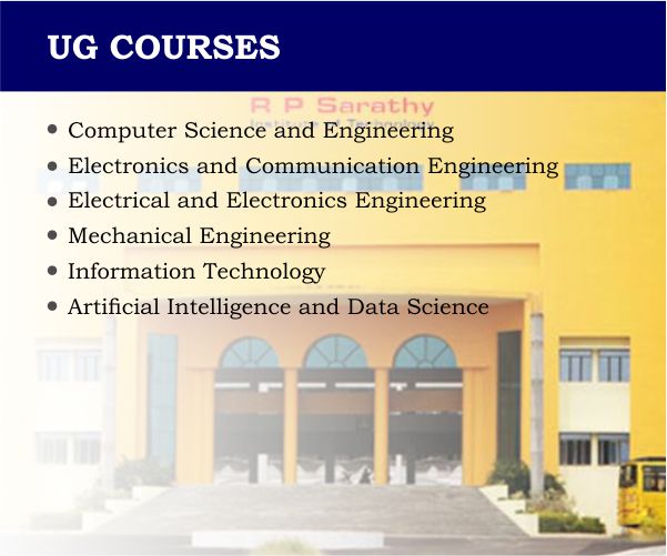 Founded in 2008 by Smt. Mahalakshmi Ammal Educational Trust, R P Sarathy Institute of Technology (formerly known as Narasu’s Sarathy Institute of Technology) represents a rich tradition of excellence in technology-based education. A premier-league institution among the affiliates of Anna University, R P Sarathy Institute of Technology owes its vision to Late. Sri. R P Sarathy, an entrepreneur, educationalist and philanthropist.